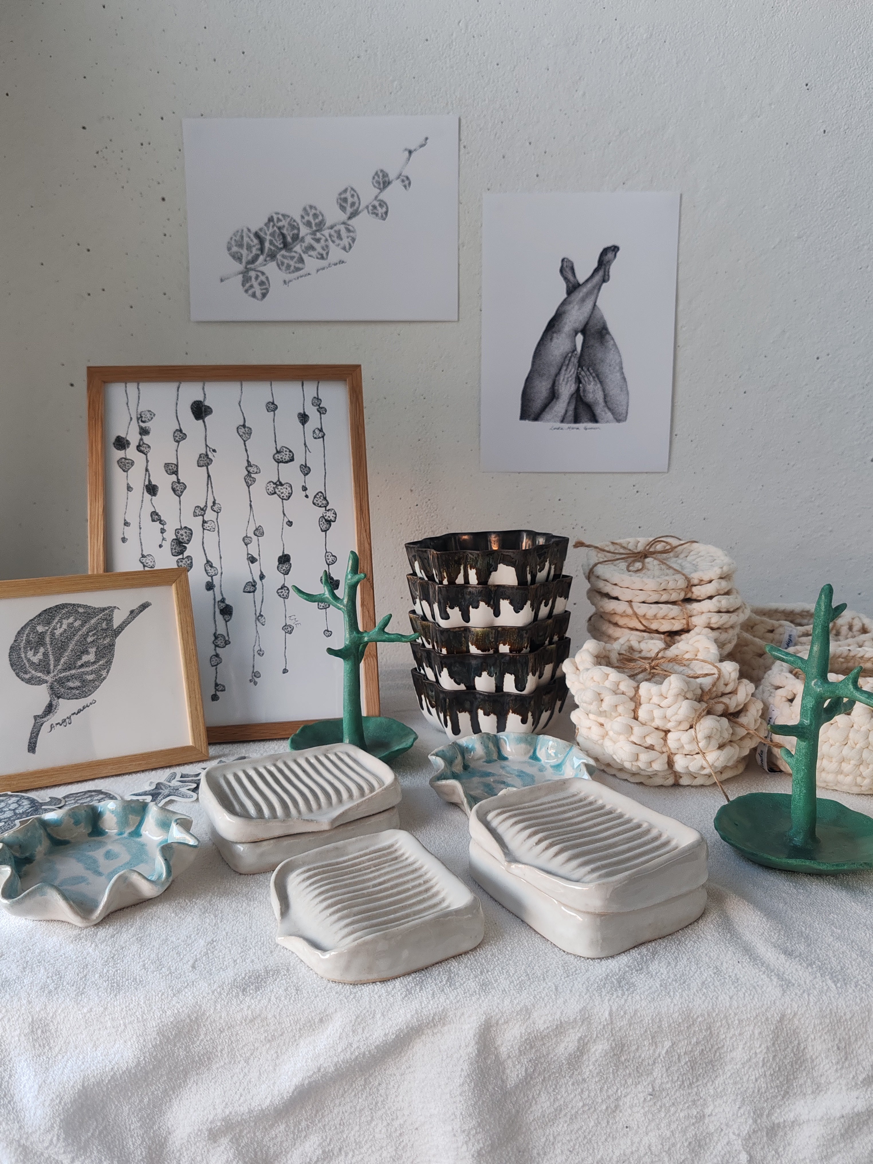 KauppaanRakkaudesta ilmaisuun Linlinda Design valmistaa käsin keramiisia graafisia ja tekstiili tuotteita.